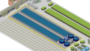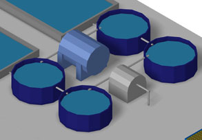 bay, adjacent to the hydroponic tomatoes, is the aquaponic production