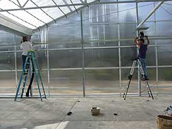 John Vittands and Zach Mayer installing the shade curtain drive lines.