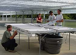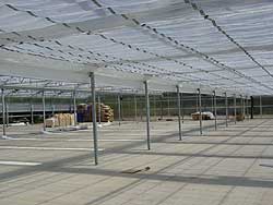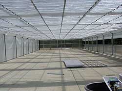 The western house in which hydroponic tomatoes will soon be grown.  The thermal shield and retractable interior wall are installed.