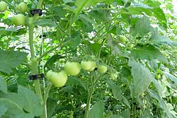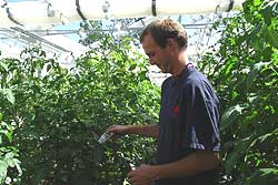Shaun Strickland adding beneficial insects to the tomato bay.