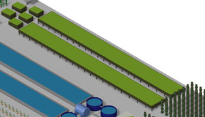 The space just north of the NFT lettuce system will be used for seed germination and plant propagation. Specially designed tables will provide the proper moisture, temperature and air circulation to the germinating seeds. Once at the seedling stage, the small plants will be transplanted into the appropriate culture system. |