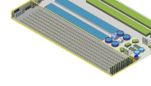 In the western-most bay is the hydroponic tomato production system, which fills a 36 x