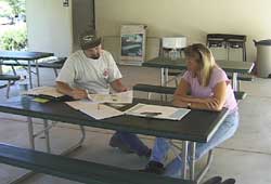 Owners, Richard and Peggy Radanovich, measuring greenhouse